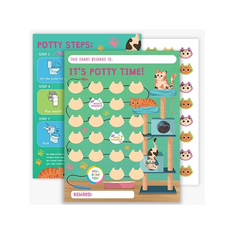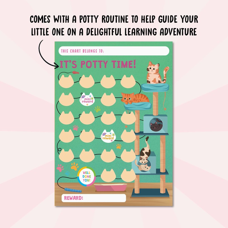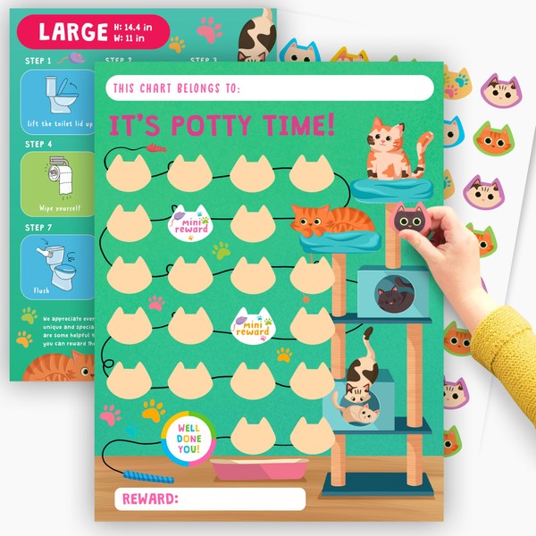 Sticker Chart for Potty Training - Train to Poop - Behavior Chart for Kids at Home - Toilet Training Reward Chart for Toddlers - Cute Cat Design for Boys Girls Son Daughter - by Central 23