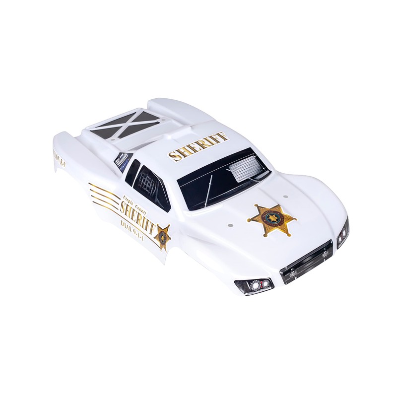 - Sticker Set Police Sheriff Style RC Car Truck Decal fit Most 1/10 1/8 Scale. Refer to the measurements in the listing pictures to determine if it will fit on your model. It comes with more stickers than you need on a RC body so you have enough choice on what to apply to the body. The decal elements come in different sizes so there will be at least some decals can be applied to your model.