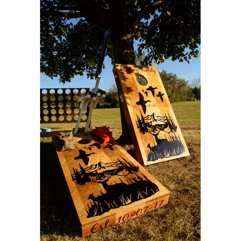 - Cornhole decals for both boards this is a set! Hit the customize now button to tell us your color choice. If custom text is shown please let us know that also. It will save your information when added to the cart.