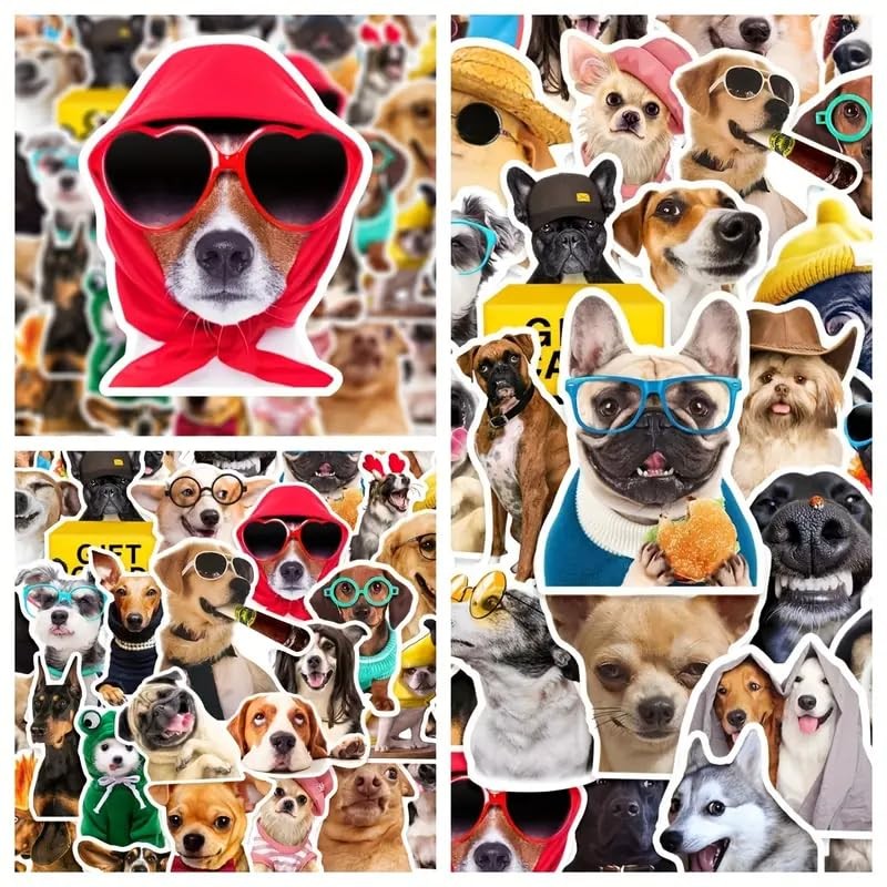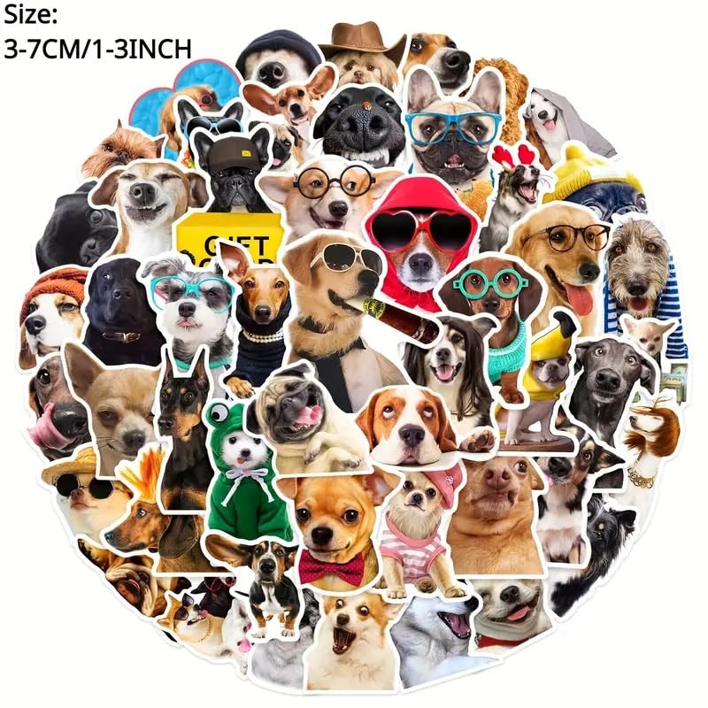 Stickers de Vinilo 50 pack| Estampas de Perros de Dibujos Animados Adorables| No Repetitivo para Botella de Agua, Laptop, Álbum | Navidad, Regalo, Scrapbook| Calcomanias para Niñas y Mujeres