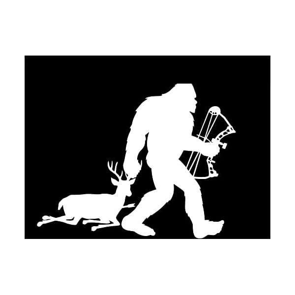 Stickers Decals (Color Black) 6" Long Side Bigfoot Sasquatch Bow Deer Hunter Funny Diecut Vinyl Window Decal Sticker Car
