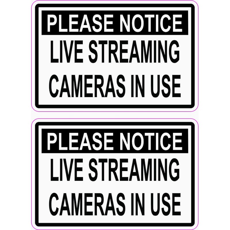 StickerTalk Live Streaming Cameras in Use Vinyl Stickers, 1 Sheet of 2 Stickers, 3 inches by 2 inches Each