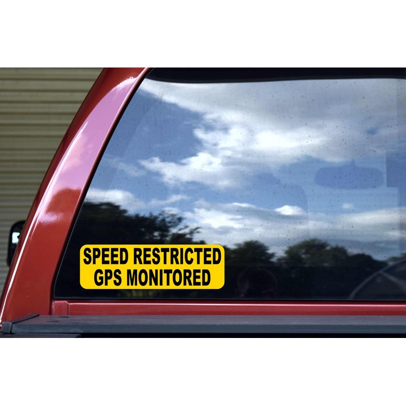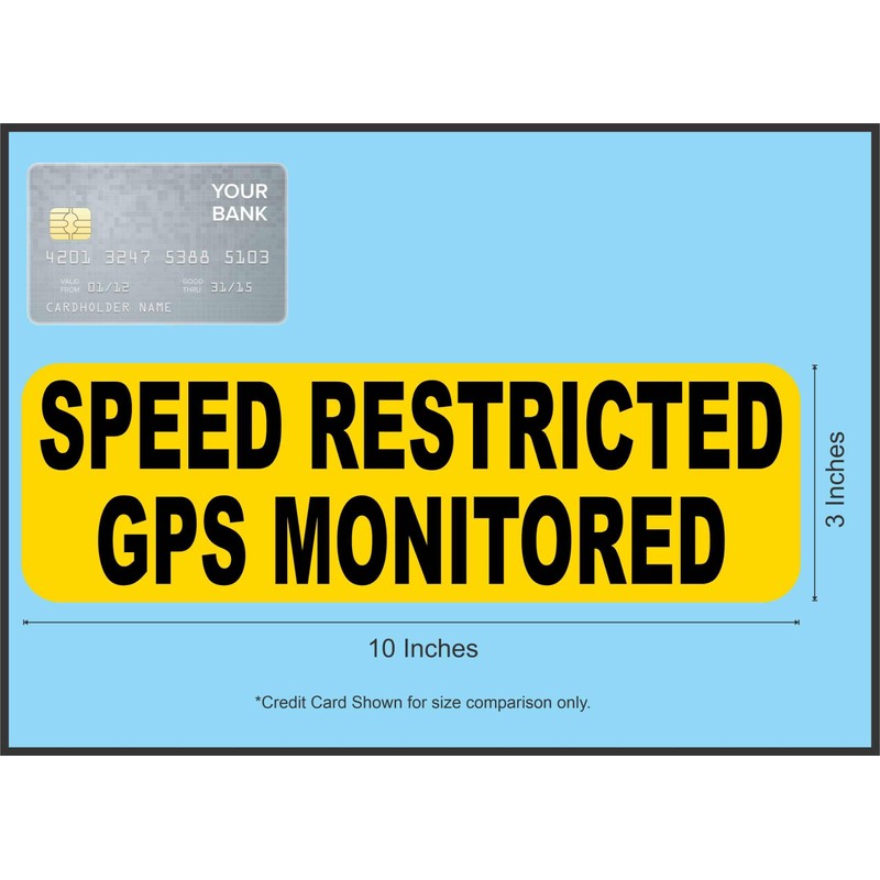 10 inches by 3 inches (254 mm x 76.2 mm) Speed Restricted GPS Monitored Vinyl Sticker