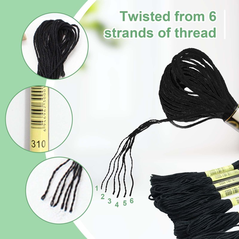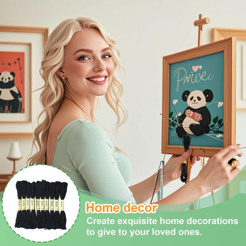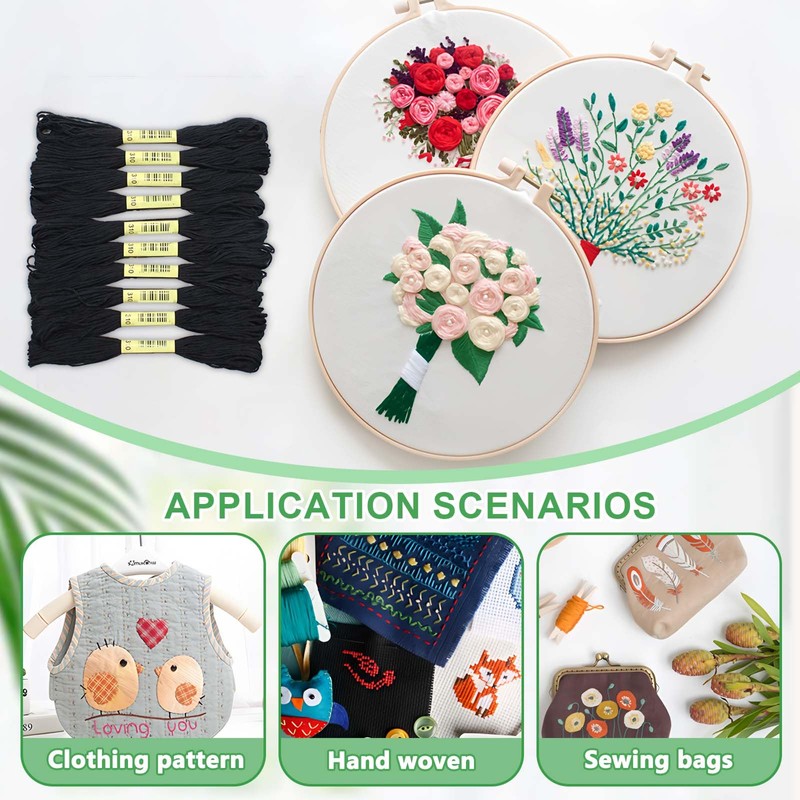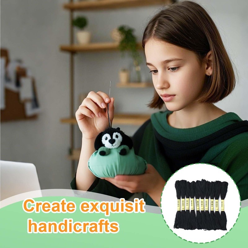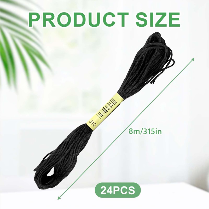 - 2. Umfangreiches Set: Das Set enthält 24 Stränge schwarzes Stickgarn, die sich hervorragend für Kreuzstich, Stickerei, Freundschaftsarmbänder und viele andere kreative Projekte eignen. Dank der Vielzahl an Strängen können Sie Ihre Kreativität ohne Einschränkungen ausleben.