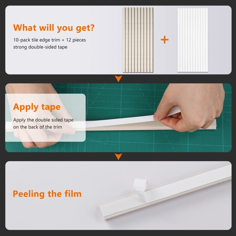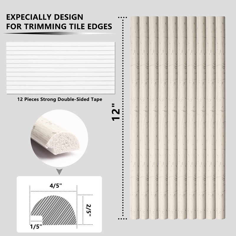 STICKGOO 10-Pack Wall Molding Trim, 12" Tile Edge Trim for Peel and Stick Backsplash Tile, Tile Edge Decorative Liner Comes with 12 Pieces Strong Double-Sided Tape