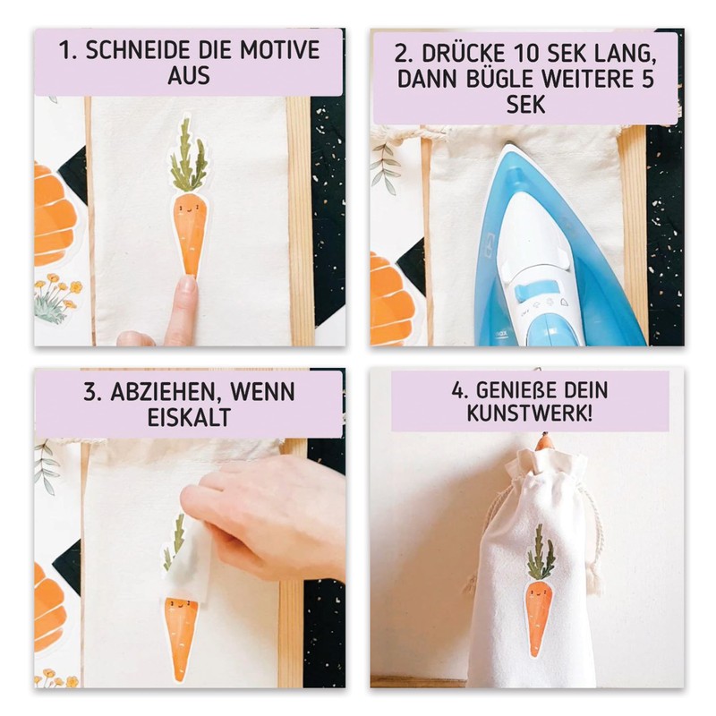 Stickly Iron-On Transfers Vegetables A5 Set for Textiles, 2 Sheets for Iron-on, Decoration, Repair of T-Shirts, Jeans, Jackets, Avocado, Pumpkin, Carrot Patches for Children, Babies
