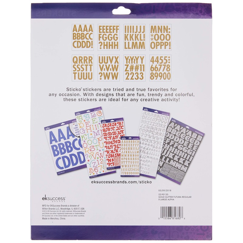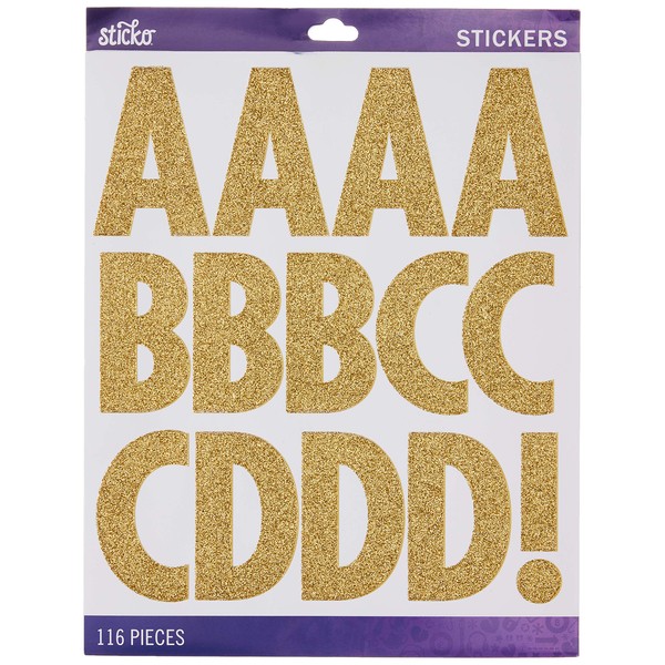 Sticko Alphabet Stickers, Regular X-Large, Gold Glitter Futura