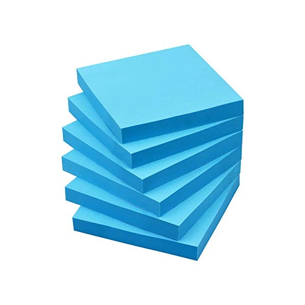 Sticky Notes 3x3 Self-Stick Notes Pads with 6 Bright Colors, Easy to Post for Office, Shool, Home, 6 Pads/Pack, 100 Sheets/Pad (Blue)