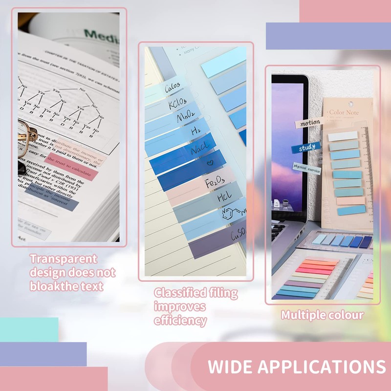 • Multi Purpose: These sticky notes flags can be used for office filing, student note taking tools and daily life note stickers. You can write any words on it, suitable to use as bookmark, note label, tab references in text books