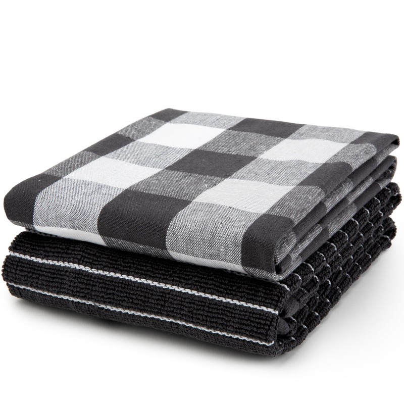 - SET OF TWO TOWELS: This multi-pack includes two distinctive kitchen towel constructions: flat weave and terry. The flat weave offers a low lint design, perfect for polishing dishware, while the terry construction provides a thick and absorbent texture, making it great for drying dishes or hands.