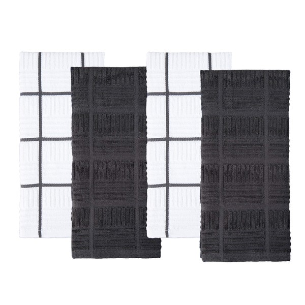 Sticky Toffee Kitchen Towels 100% Cotton, Set of 4, Gray and White Hand Towels, Tea Towels, Reusable and Absorbent Cleaning Cloths, Oeko-Tex Cotton, 28 in x 16 in