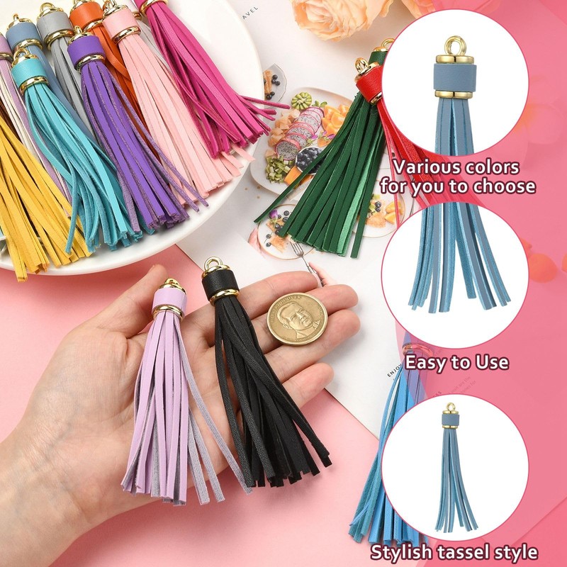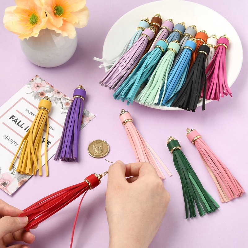 【Perfekt für DIY-Projekte】Steigern Sie Ihre Kreativität mit diesen charmanten Kunstlederquasten. Verwenden Sie sie, um Taschen zu dekorieren, individuelle Schlüsselanhänger zu kreieren oder atemberaubende Schmuckstücke zu entwerfen. Diese bunten Lederquasten sind ideal für alle, die sich für Bastelbedarf und Heimdekorationsprojekte begeistern.