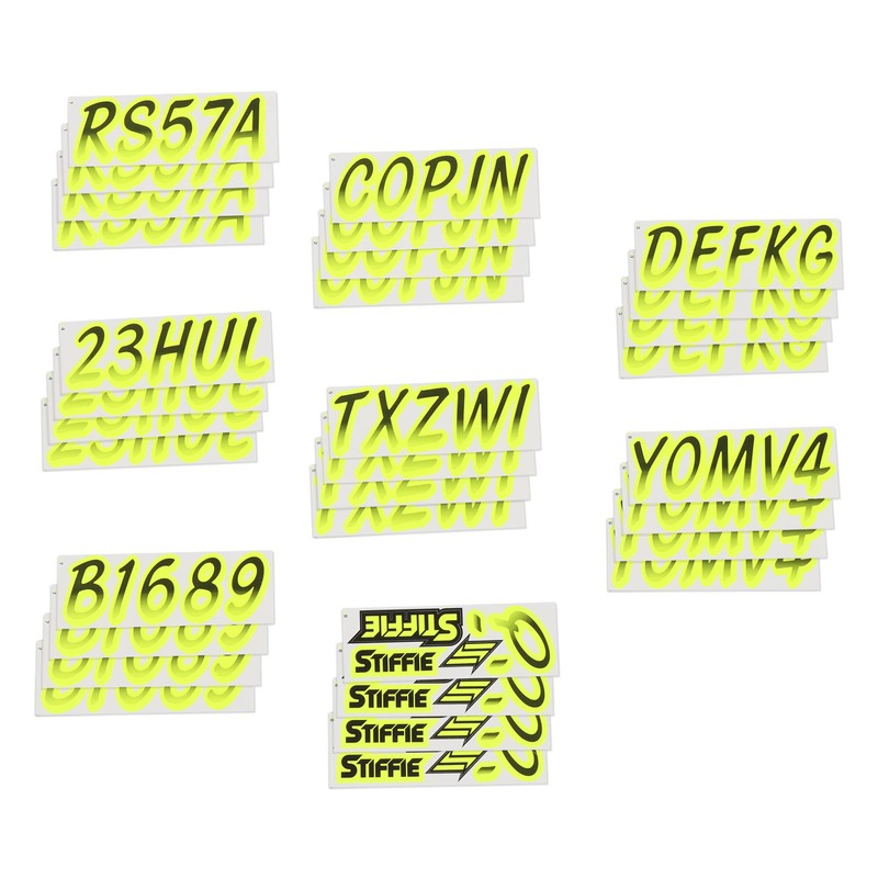 Stiffie STIFFIE Whipline Black/Day Glow Yellow 3" Boat & PWC Registration Decals ? Numbers Letters Stickers