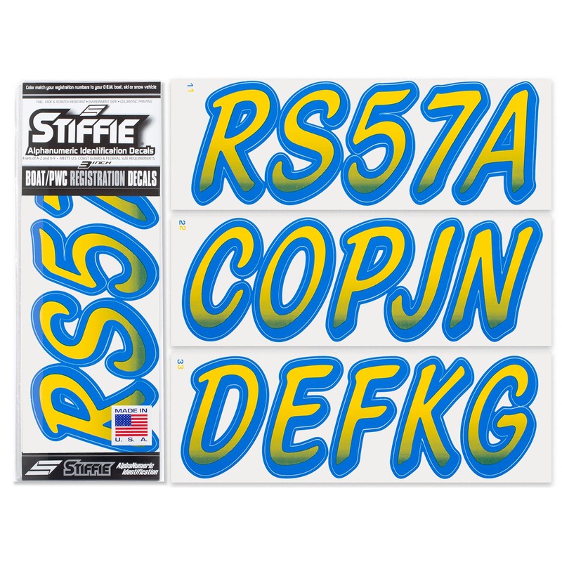 Stiffie STIFFIE Whipline Yellow/Blue 3" Boat & PWC Registration Decals ? Numbers Letters Stickers