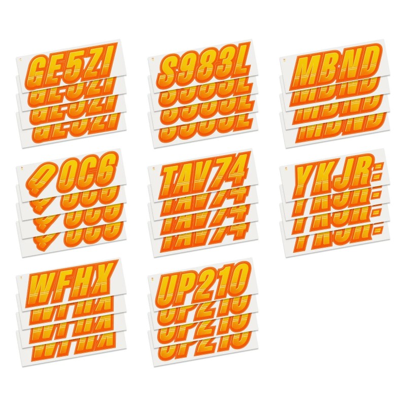 The STIFFIE Techtron™ Alpha Numeric Identification Kit has filled the void for a racing inspired boat registration decal. This style’s two-color design features a forward-facing slant with an exterior color fade-in that graduates from the bottom upward. It’s circle track, auto racing inspired form is the basis of the individual characters which are set off by an interior half toned highlight, providing a 3-dimensional look.