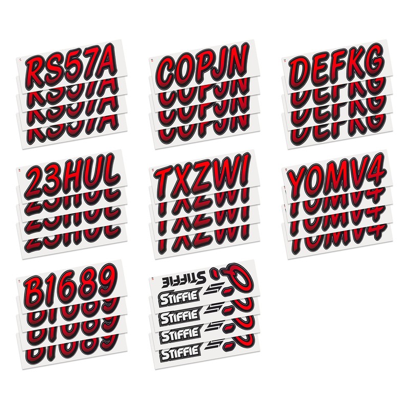 STIFFIE Whipline Lava Red/Black 3" Super Sticky Boat & PWC Registration Decals • Numbers Letters Stickers