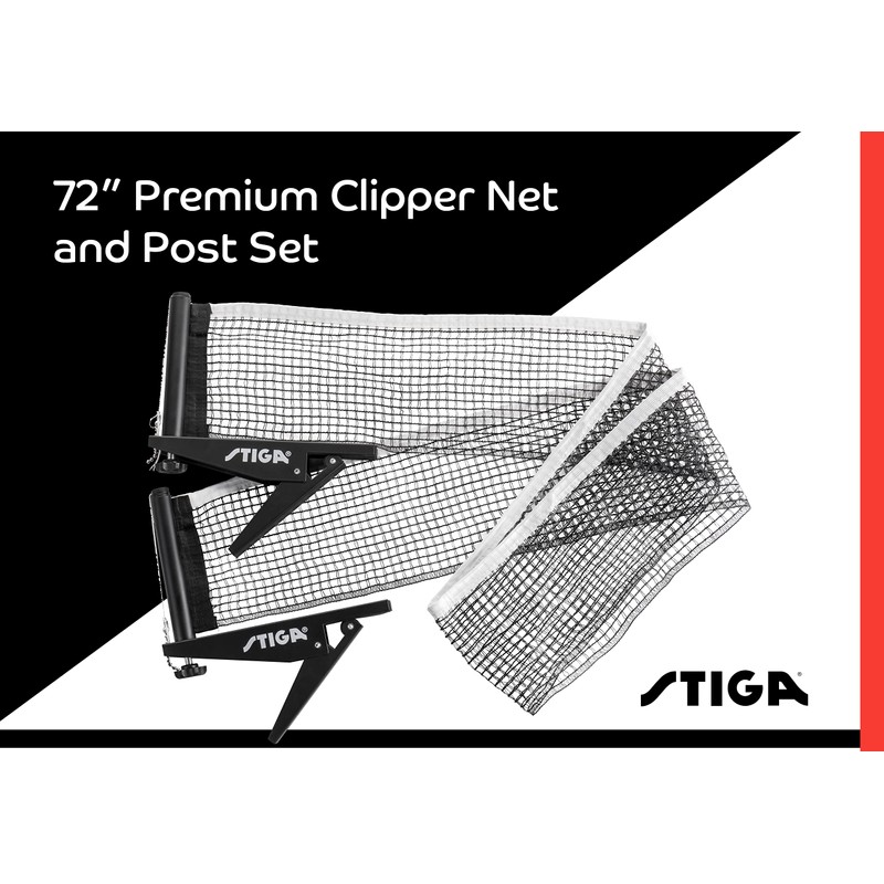 STIGA Premium Clipper 72" Regulation Table Tennis Net and Post Sets - Easy Set Up and Spring Activated Clip ping pong net set