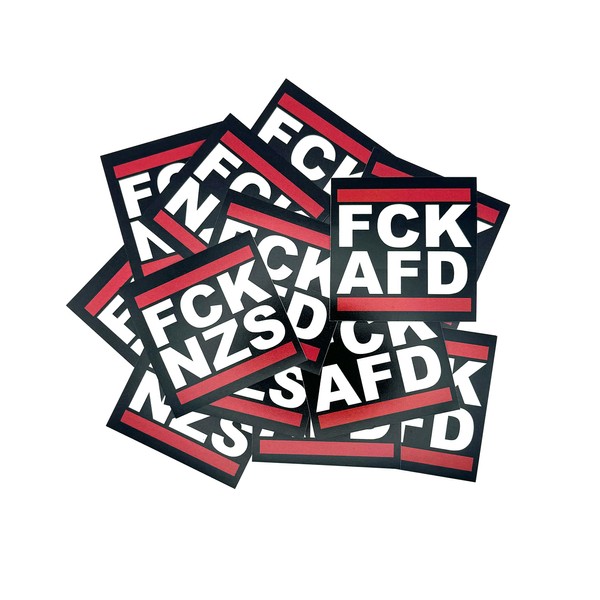 Setze ein Statement mit unseren Aufklebern! Das Set besteht aus 50 Stück "FCK NZS" Stickern und 50 Stück "FCKAFD" Stickern. - Vielseitig verwendbar für Außen- und Inneneinsatz z.B. auf Laptops, Handys, Wasserflaschen und mehr. - Einfach anzubringen: Selbstklebend für müheloses Aufkleben. - Klare Kante: Zeig Deine Unterstützung für eindeutige Statements - Gute Größe: 5cm x 5cm
