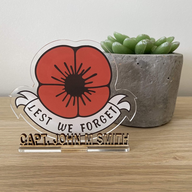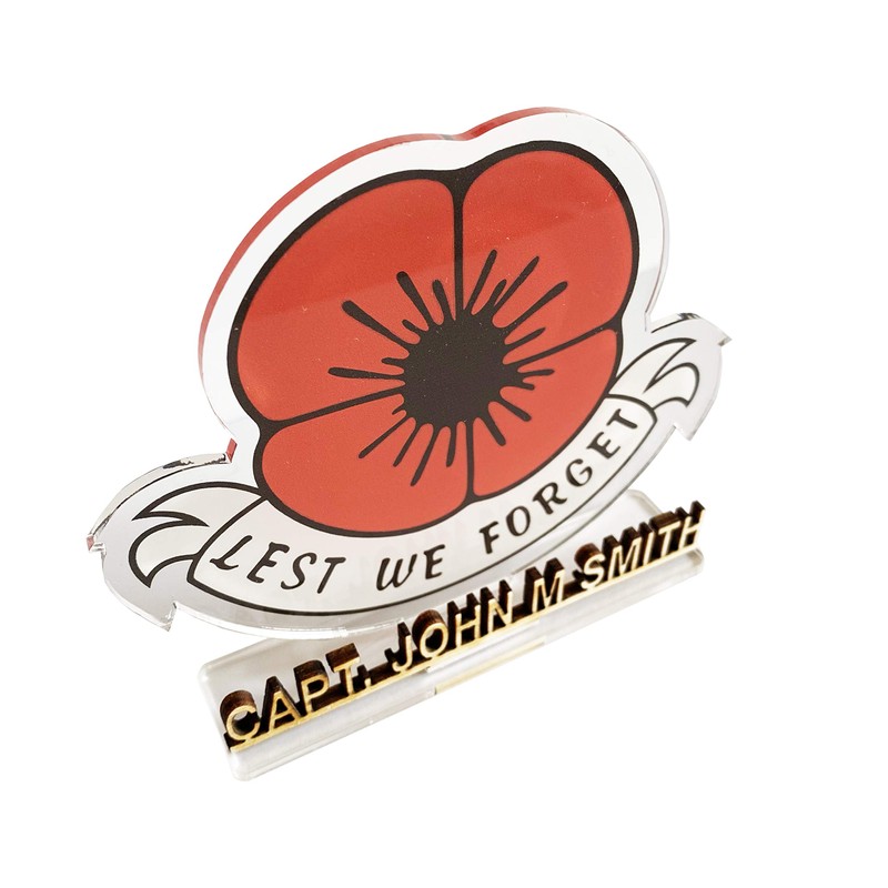 stika.co Lest we forget Poppy Remembrance Sunday, Armistice Day, War Heroes Soldiers Armed Forces, Acrylic Decorations (Custom, Large - 300mm x 250mm)