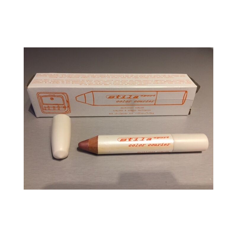 From the package: "Get carried away with color courier. Still delivers a distinctive new way to color your eyes, lips or cheeks with gleaming subtlety, a triple color crayon that transports you from a day at the beach to a walk in the rain with unwavering water repellent beauty. You're sure to always send the right message with color courier."