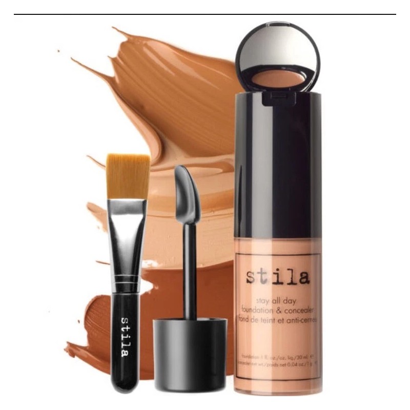 Stila Stay All Day LiquidFoundation 1.0 oz Concealer & Brush Kit Color honey 8