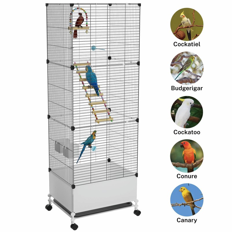 - [Extra Large Bird Cage]: Our pet cage measures 14.17" × 18.5" × 53.15", enlarged to offer larger space; this cage is suitable for large, medium and small birds such as parakeets, parrots, conures, cockatiels, canaries, etc. The 0.59" bar spacing offers safety, making it a perfect home for your feathered friend.