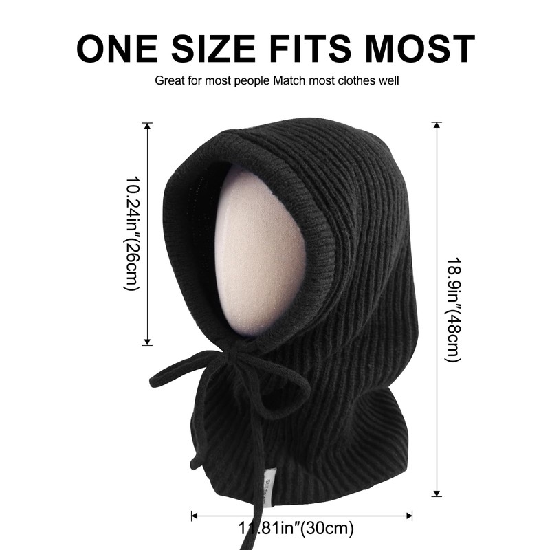 Stilldawn Hooded Scarf Beanie for Women & Men – Balaclava Winter Hat, Knit Skull Cap with Neck Gaiter – Warm Wool Blend Scarf Hat for Cold Weather, Running, Skiing – Adjustable, Unisex (Black)