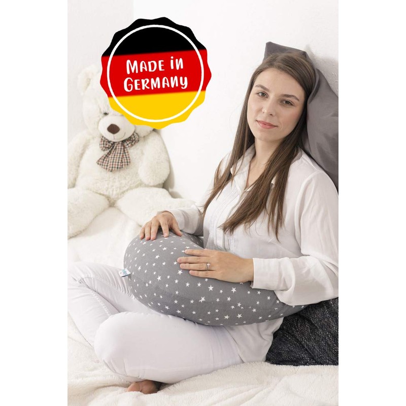 Stillmond & Cuddly Pillow Happy 120 cm Cuddly Nursing Pillow & Abdominal Support Pillow Cuddly & Reading Cushion Quiet EPS Micro Beads Filling TÜV Certified (Ed & Edda Stars Grey)