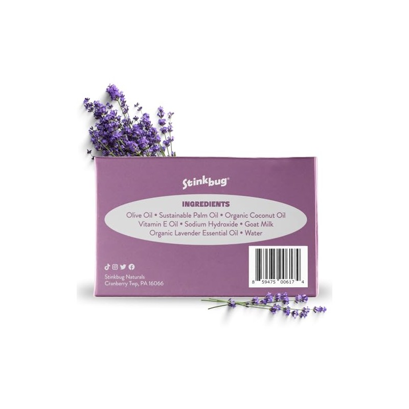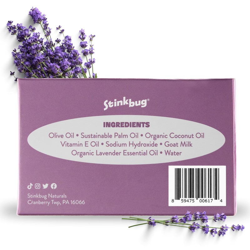 Stinkbug Natural Organic Goats Milk Soap With Lavender, Natural Ingredient, 4 Ounce Pack of 3