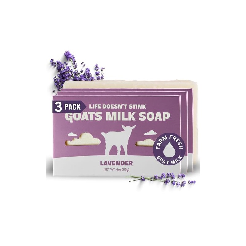 - Pack of Three Bars: Enjoy all the skin-nourishing benefits of goat's milk soap with this package of 3 Lavender-scented soap bar.