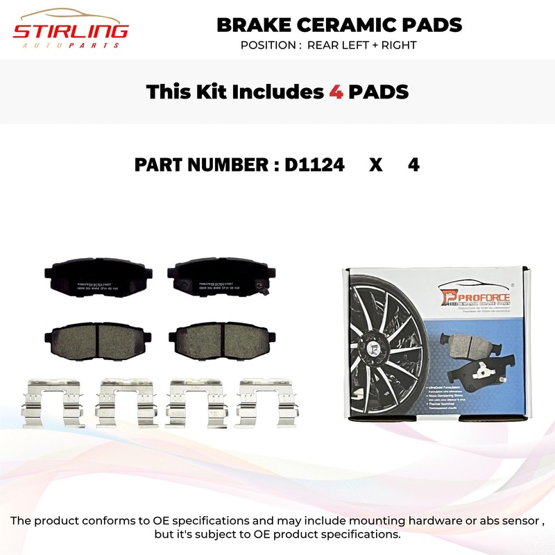 Stirling 4PCs Rear Brake Ceramic Pads kit for Subaru BRZ 2017 2018 2019 2020 without Brembo Brakes| Proforce D1124
