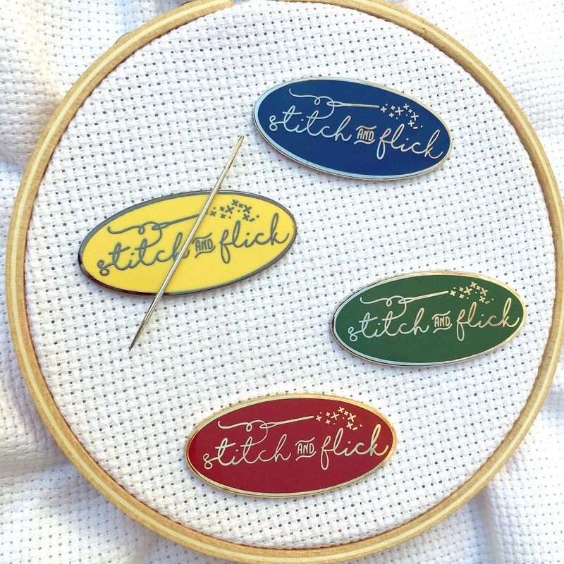 Stitch and Flick (Green/Silver) Hard Enamel Needle Minder