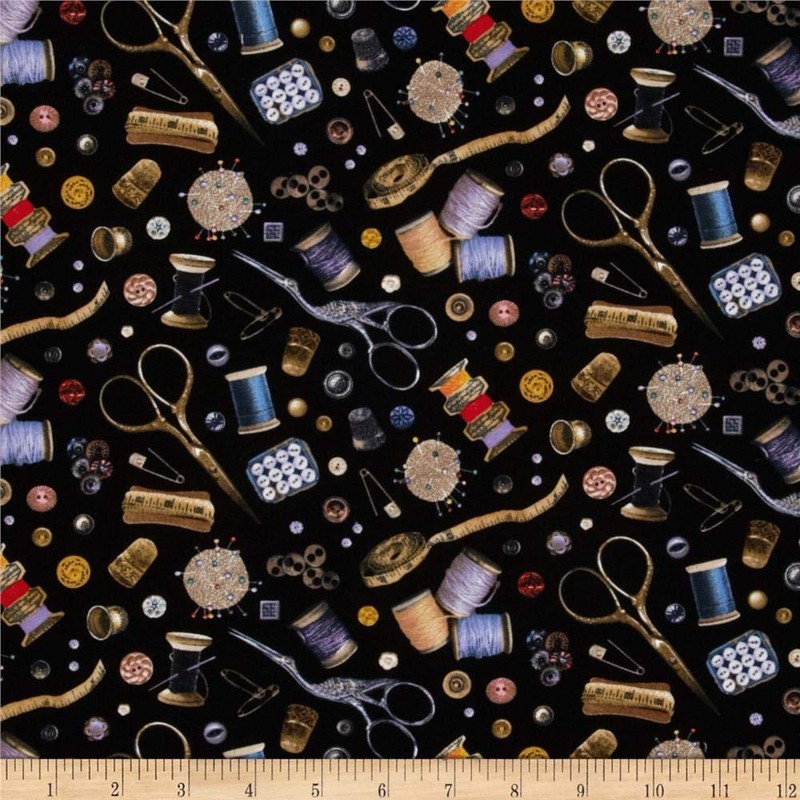 Stitch In Time Notions Black, Fabric by the Yard
