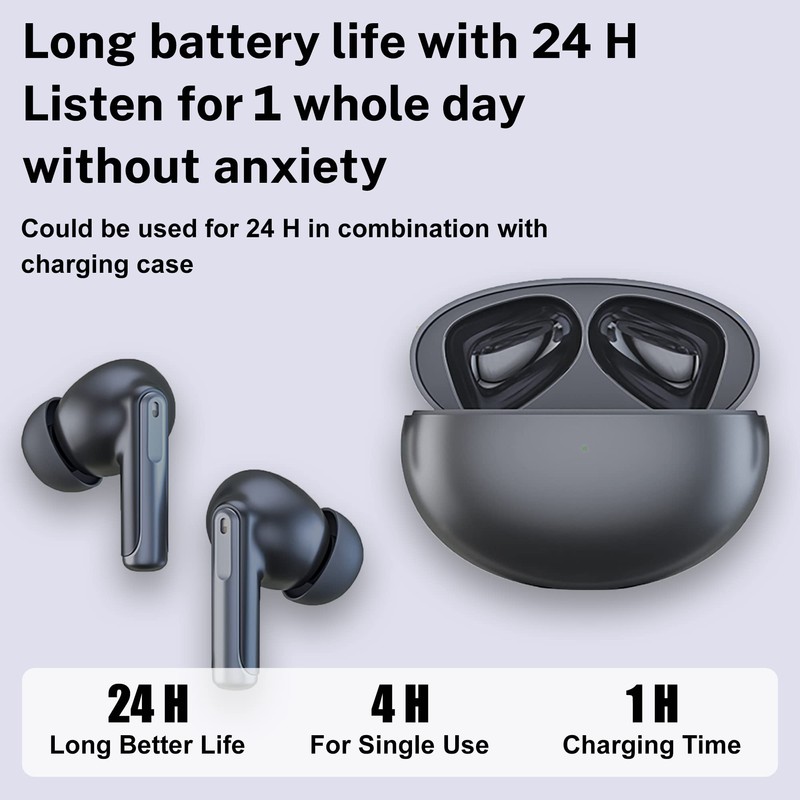 • [Support Wireless Charging & USB-C Fast Charging With Long Battery Life] StitchGreen Support wireless charging with QI Support fast charging with Type-C the earbuds wireless bluetooth only take 1H to fully charge. Long battery life with 24 H Listen for 1 whole day without anxiety Could be used for 24 H in combination with charging case. 24H Long Better Life, 4H For Single Use, 1H For Single Use Charging Time.The left and right wireless headphones can be used alternately up for 60 hours. Provides a long-lasting and convenient charging experience.