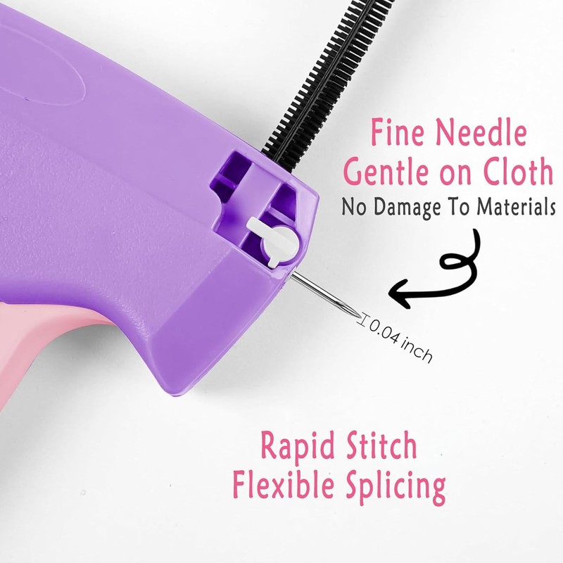 Stitchy Quick Clothing Stitch Gun,Handheld S-titch Quick Gun, Micro Sewing Gun Tagging Gun Kit Includes 6 Needle, 1000 Black & 1000 White Fasteners (Purple)