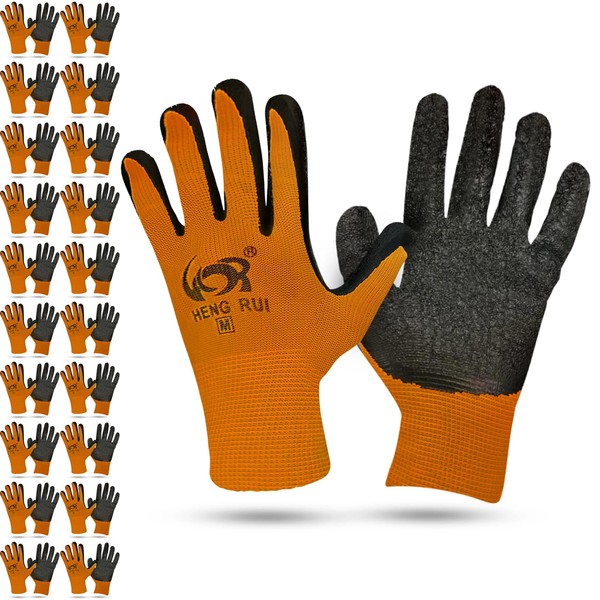 STIX-ON 20 Pairs Orange Large Work Gloves–Heavy Duty Rubber Coated Safety Work Gloves–Multipurpose Gloves