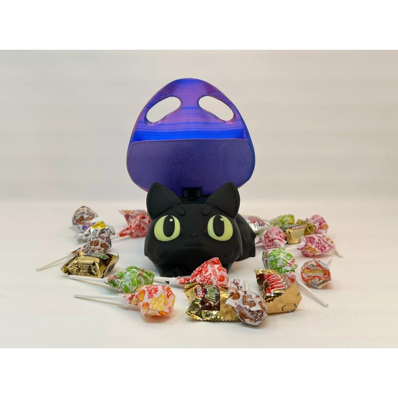STLFlix Witch Kitty Candy Holder | 3D Printed Black Cat | Halloween Candy Dish