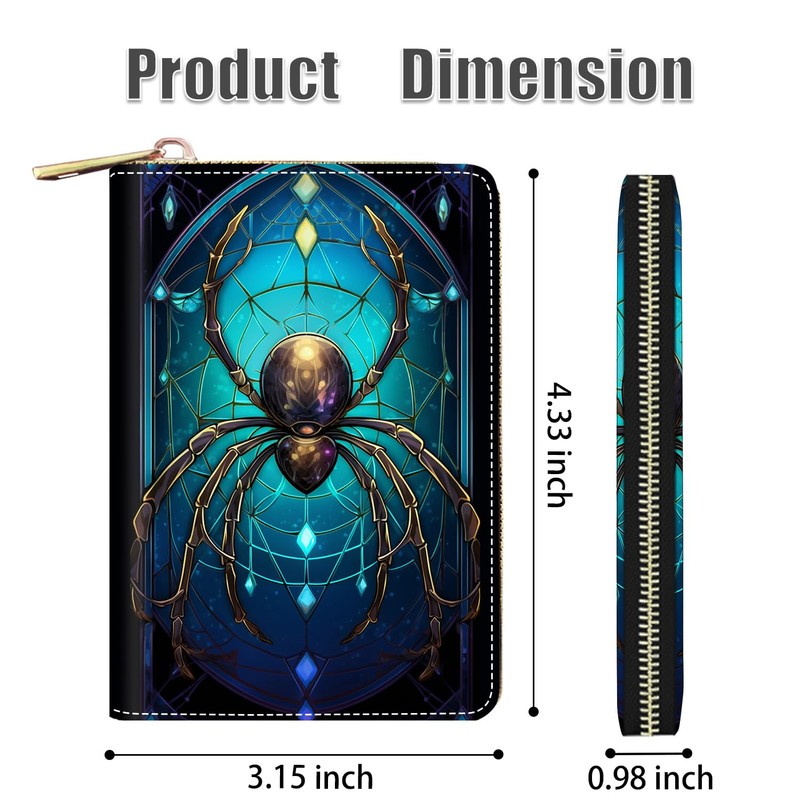 stmedazm Credit Card Holder Wallets for Women, RFID Blocking Small Leather Card Case Wallet with Zipper Accordion Wallets, Spider