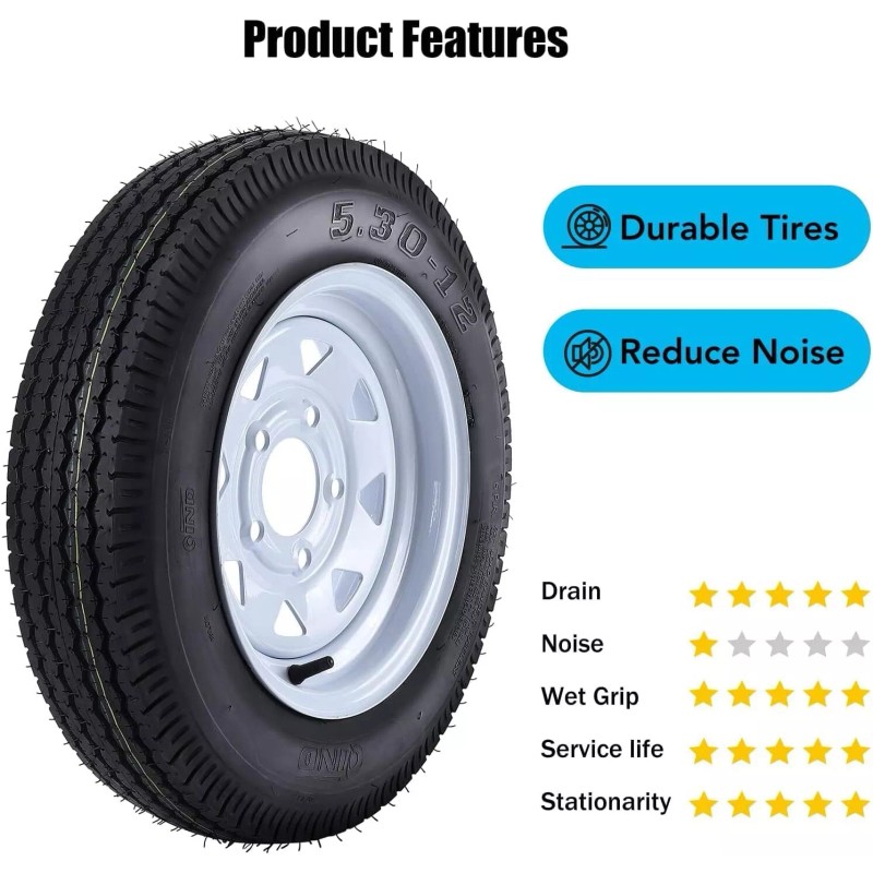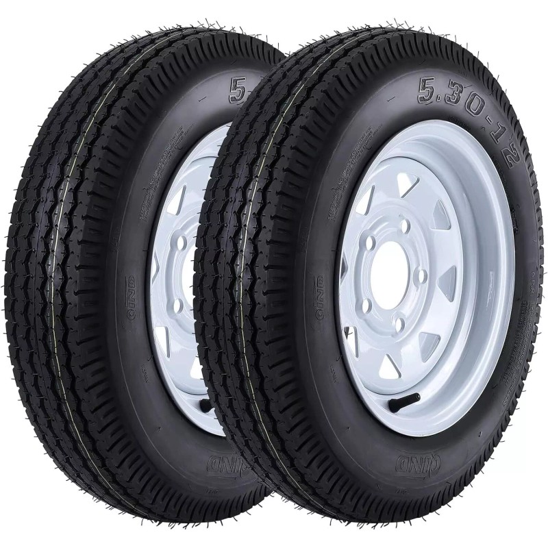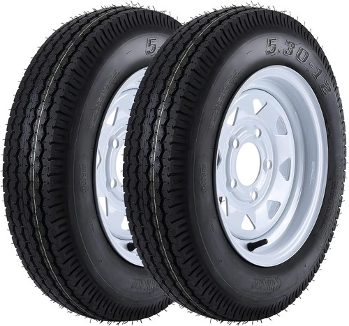 STMHOM 2pack Trailer Tires 5.30-12 5.30x12 530-12 530 12 with 12" Rims 5 Lug on 4.5"