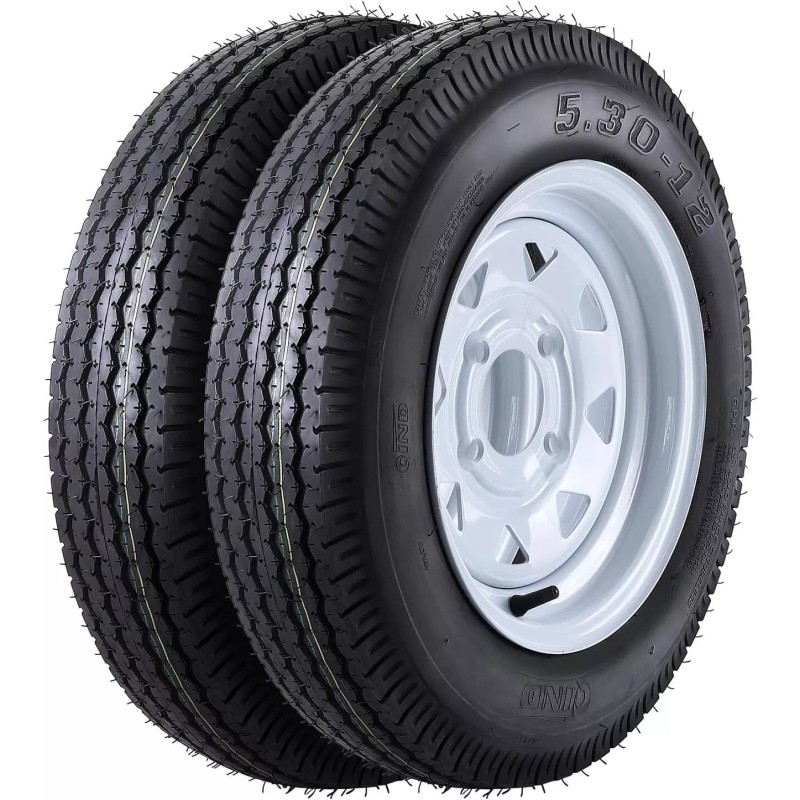 STMHOM Set of 2 Trailer Tires with 12" Rim 4 Lug on 4" Load Range C 6PR 5.30-...