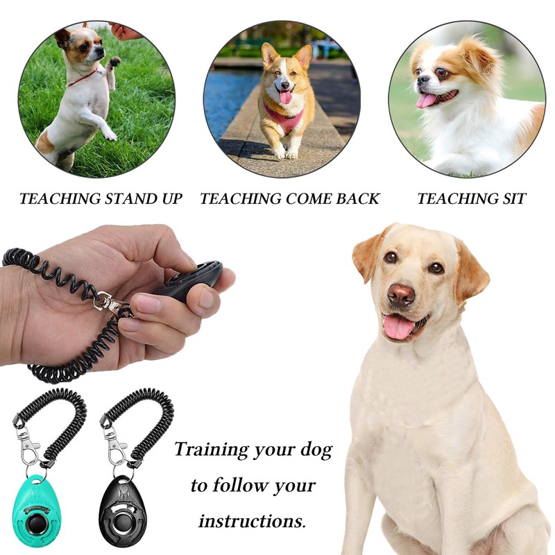 - DOG TRAINING CLICKER: The dog clicker for training could be used to train your dog’s basic obedience, tricks, signal to your dog’s when they did something right, or to correct bad behavior. Comes with elastic wrist straps to prevent them from being dropped. Large button presses easily and comes right back up without getting stuck.
