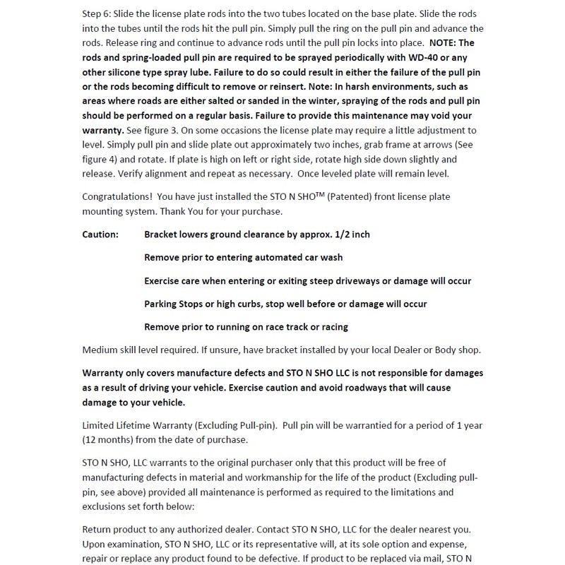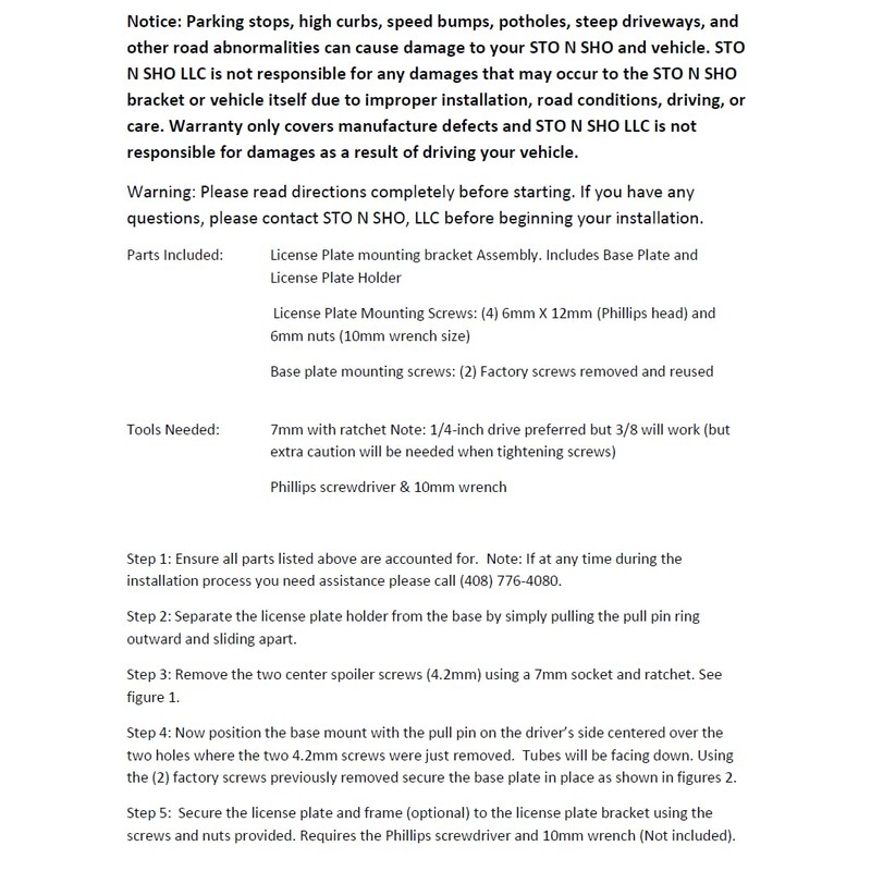 STO N SHO Front License Plate Bracket Compatible with 2024 Ford Mustang WITHOUT performance pack/Dark Horse without handling package and WITHOUT 401a equipment group CO-PILOT360 assist + (SNS372)