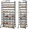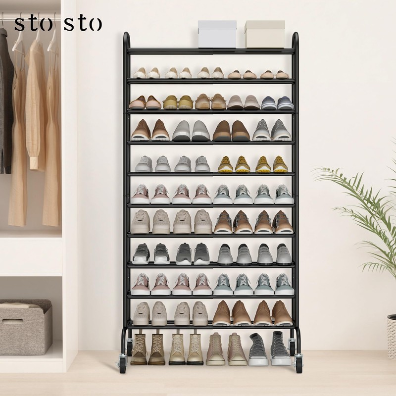 STO STO Expandable Shoe Rack, 10-Tier Metal Tall Shoe Rack for Garage, Up to 44 Pairs Adjustable Shoe Rack Storage for Front Door Entrance, Free Standing Shoe Rack Organizer for Entryway, Black