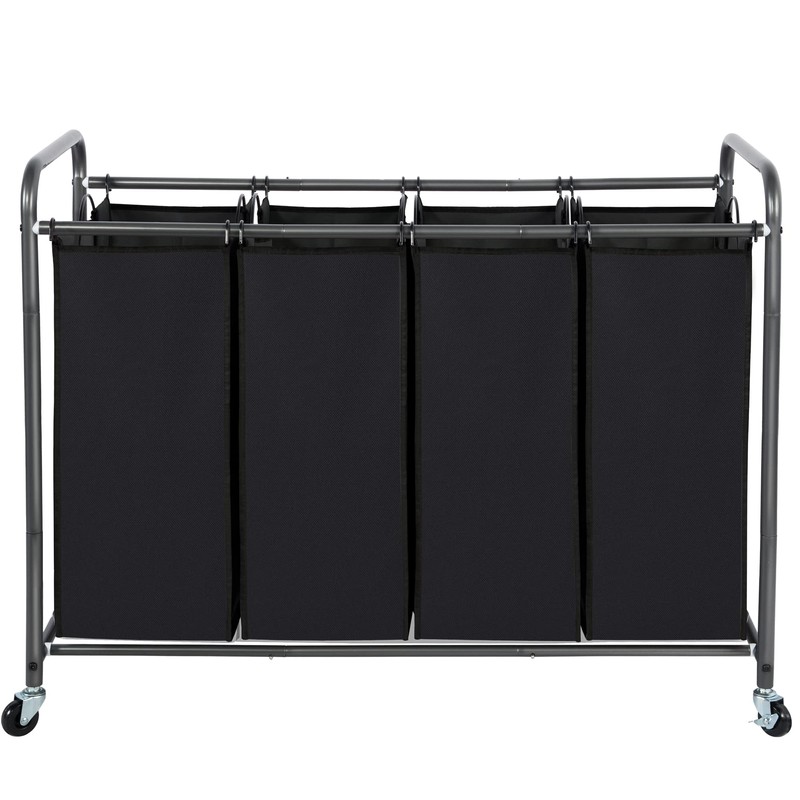 STO STO Laundry Sorter 4 Section, 4 Bag Laundry Hamper, Rolling Laundry Cart, Laundry Basket with Heavy Duty Lockable Wheels and Removable Bag for Clothes Storage, Black