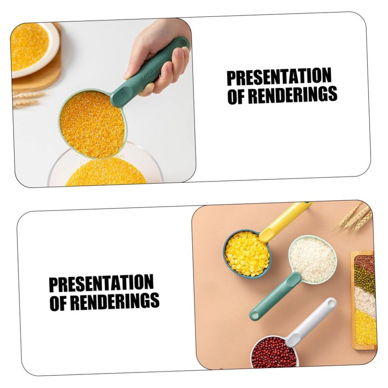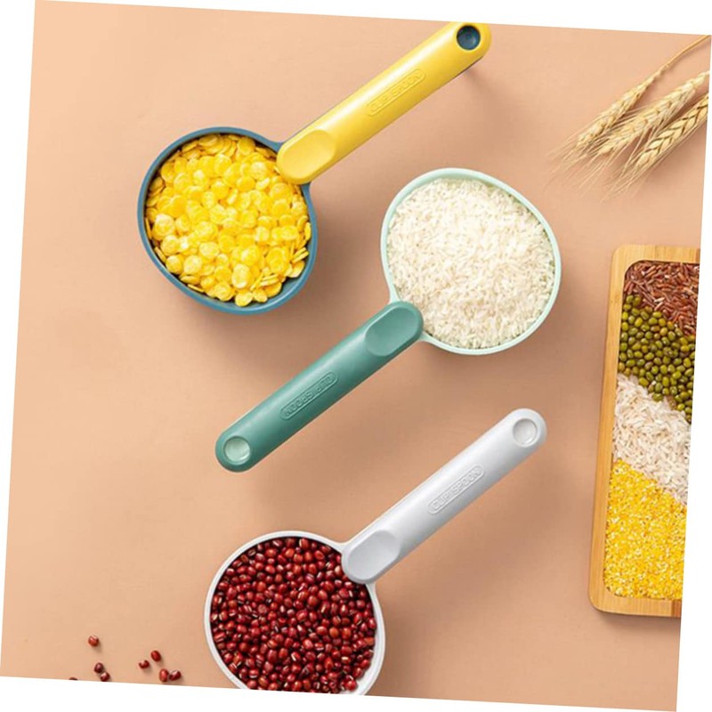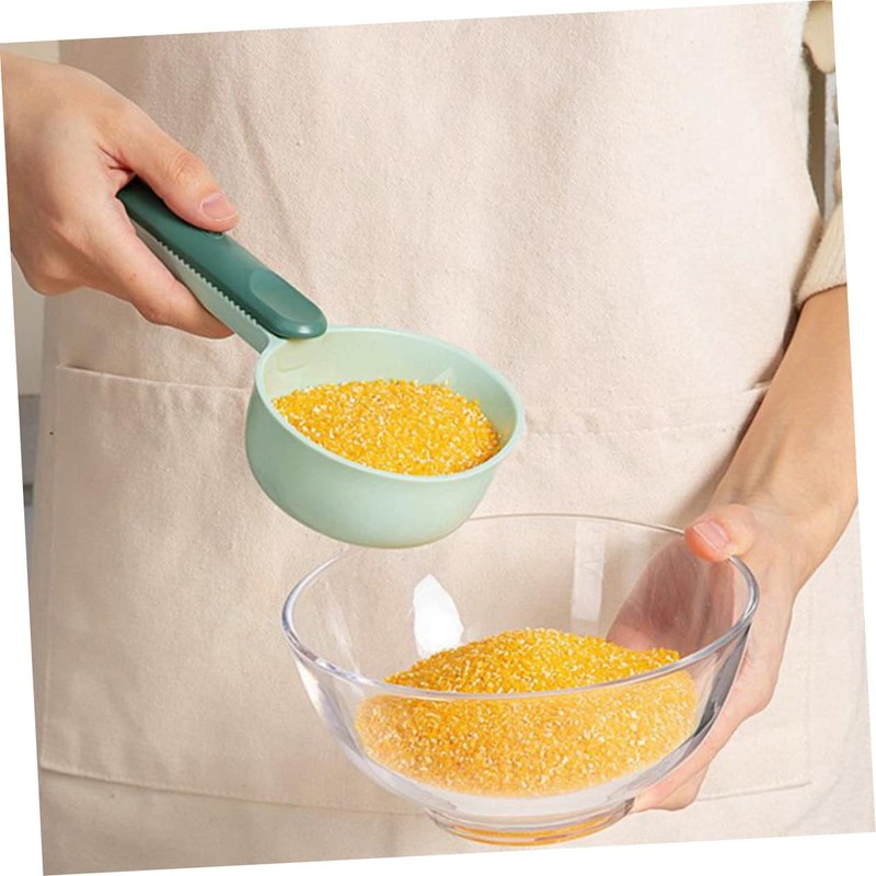 rice scoop These are creative rice spoons with sealing clip design.scoops for dry goods It features various purpose, like measuring and holding rice and cereals, also can be a sealing clip.multi purpose scoop Made of abs material, it is and not easily broken