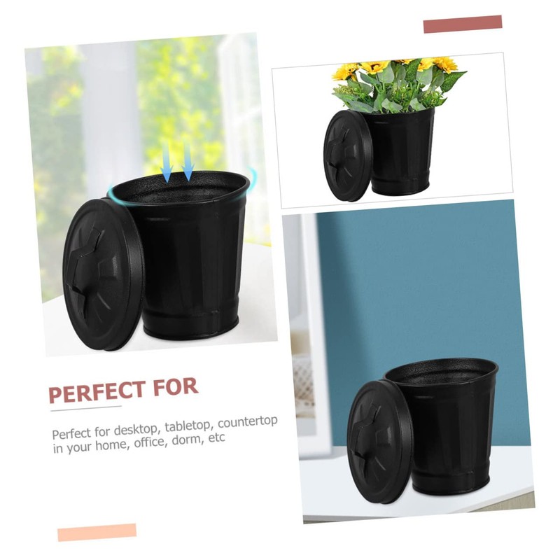 - Metal Succulent Pot: Mini Trash Can with Lid Wastebasket for Bathroom Vanity Desktop Tabletop- It can be placed anywhere in the kitchen, living room, toilet, bedroom, office, etc. Small appearance, large volume.