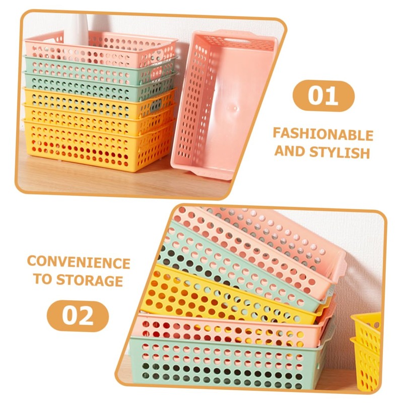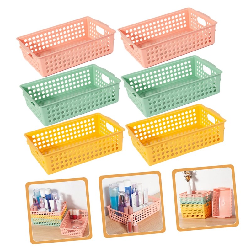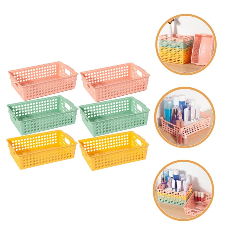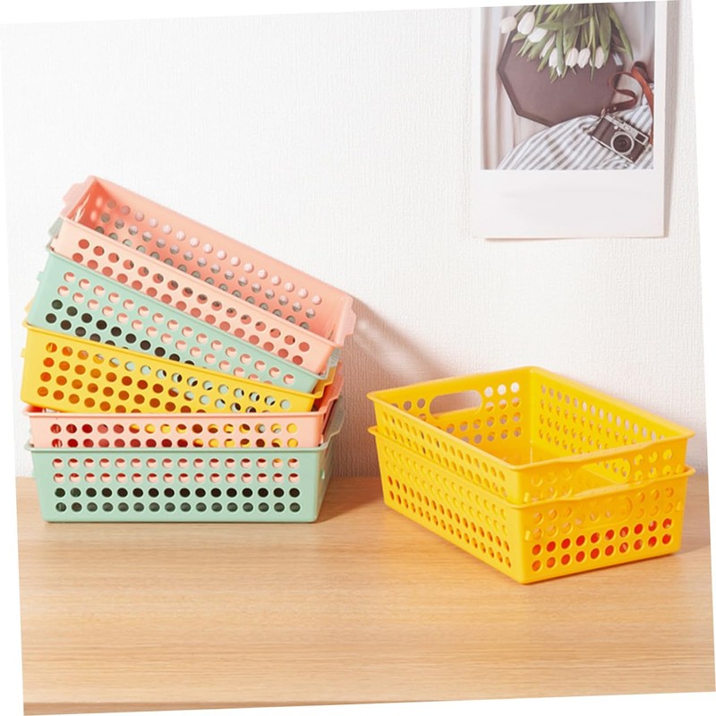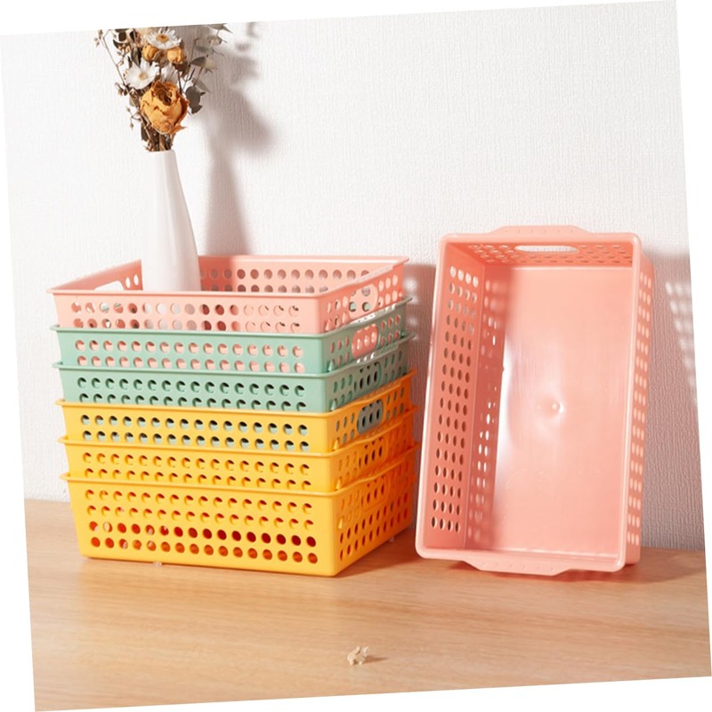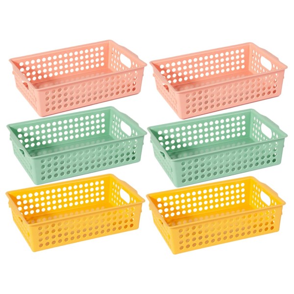 STOBAZA Ganizer Bins 6 Pack Mesh Storage Basket for Desk Office Pantry Kitchen Sturdy Plastic Easy to Clean Pink Yellow Green