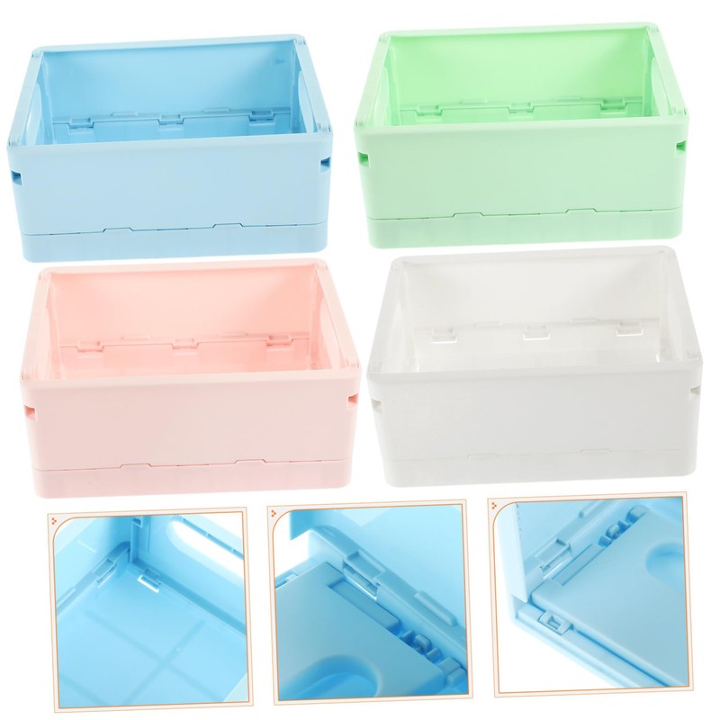 STOBOK 4pcs Decorative Table Storage Baskets Folding Organizing Crates for Home Kitchen Bathroom Office Lightweight Multi-use Small Bins