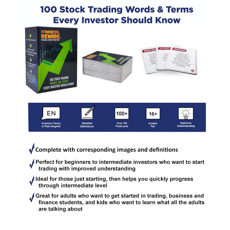 - Master Stock Trading Jargon Effortlessly: Unlock the language of the stock market with our 104 essential words and terms for new traders. Each card features a clear definition and a detailed image, making stock trading a breeze for novices!