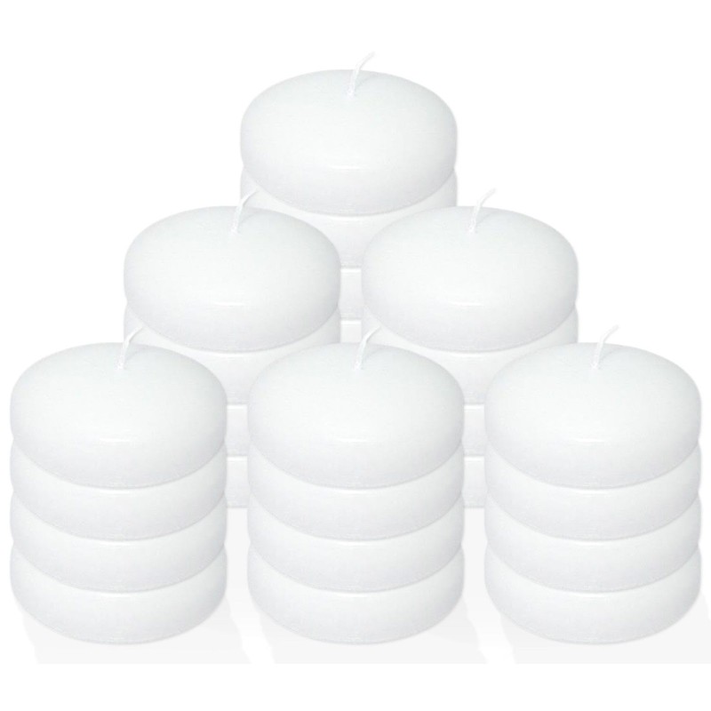 - Great Value Pack: This bulk set includes 24 white unscented floating candles. Each candle measures approximately 3" Diameter x 1.5" Height.
